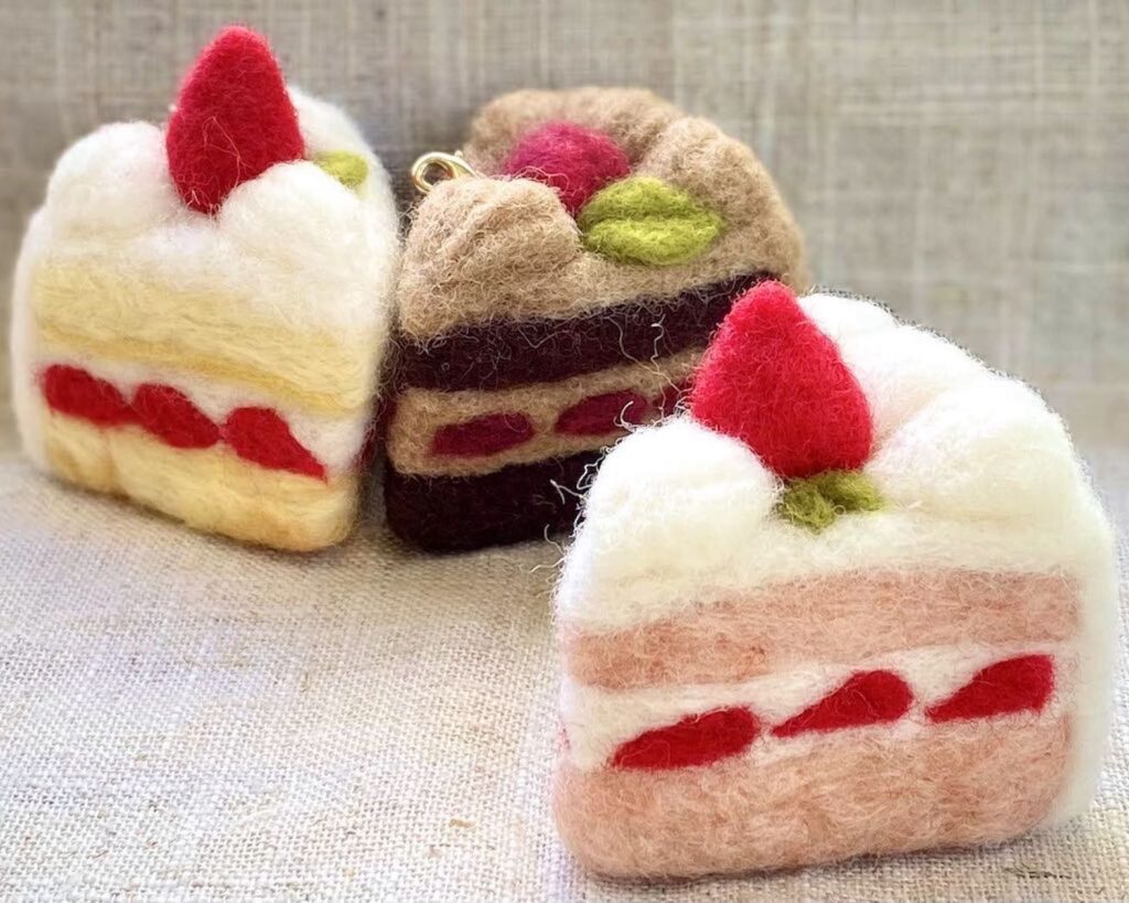 羊毛フェルトレッスン、11月のスイーツコースは、色が選べるケーキのバッグチャーム。