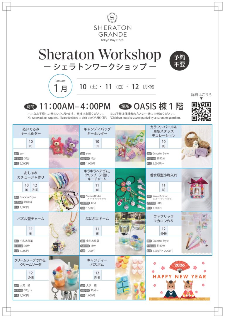 1月のシェラトン・グランデ・トーキョーベイホテル ワークショップ予定
